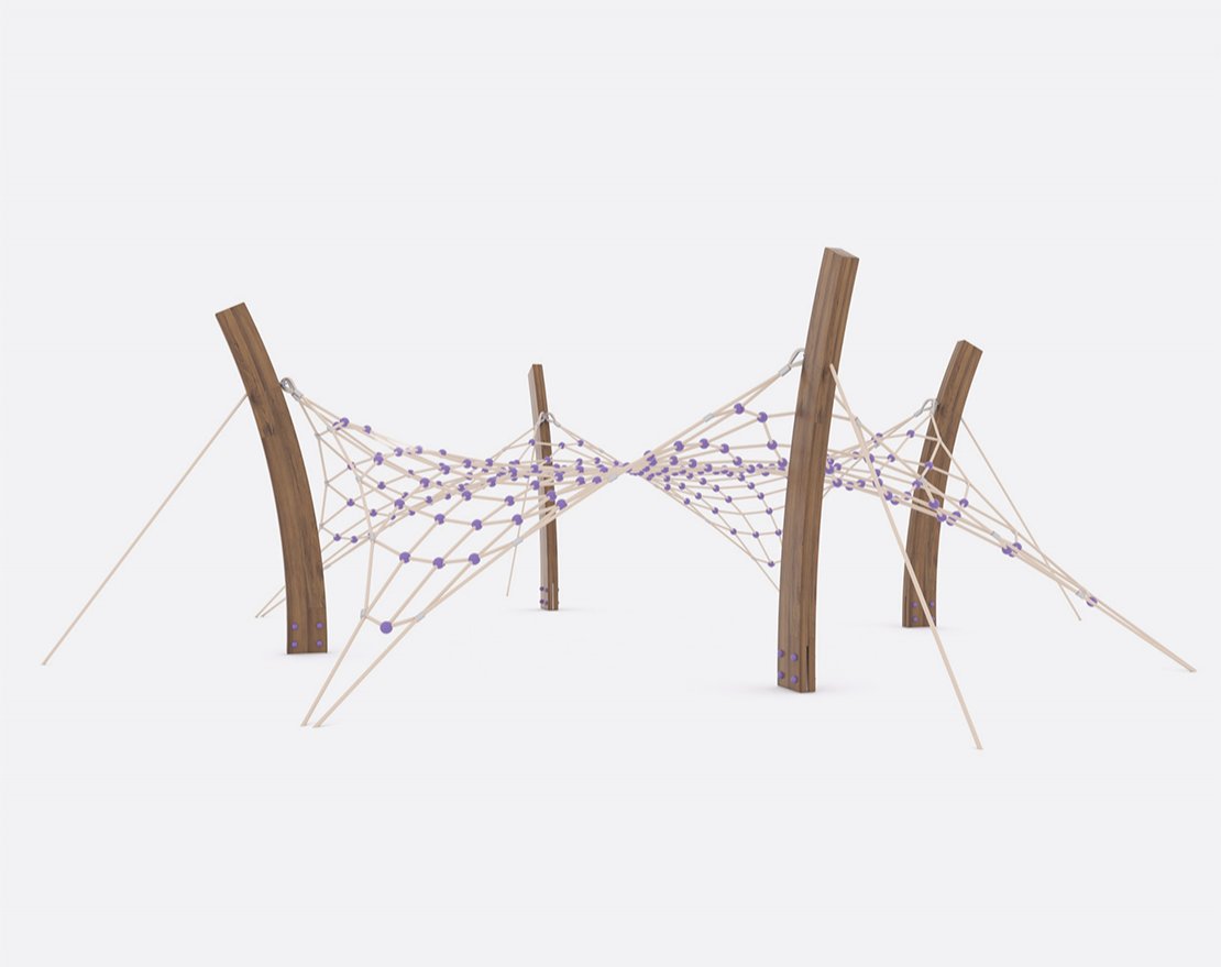 Канатный комплекс серии Lago. Состоит из опорных стоек и канатной сетки.