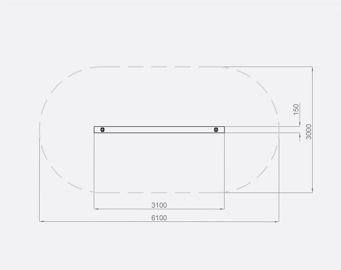 Состоит из опорных стоек и перекладины. Все крепежные элементы закрыты заглушками.