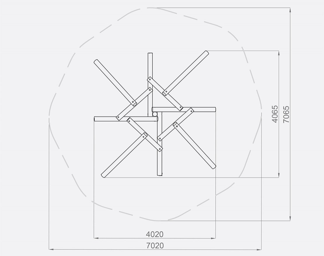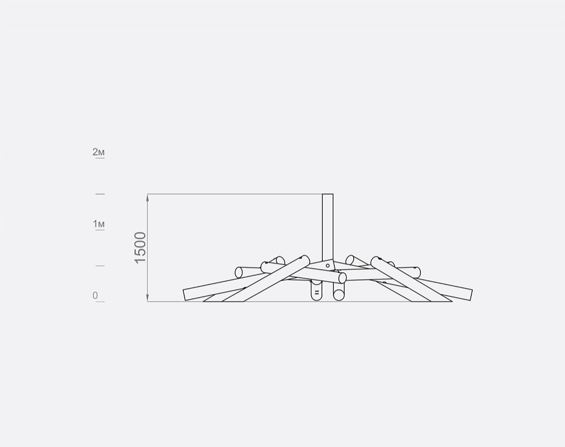Состоит из перекладин, соединенных вместе. Представляет собой пирамиду. Крепежные элементы закрыты заглушками.