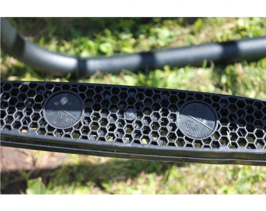 Безопасность с MaxLock. Благодаря инновационному креплению защитной сетки к прыжковому полотну, была достигнута максимальная защита от попадания в пружинный блок при падении.