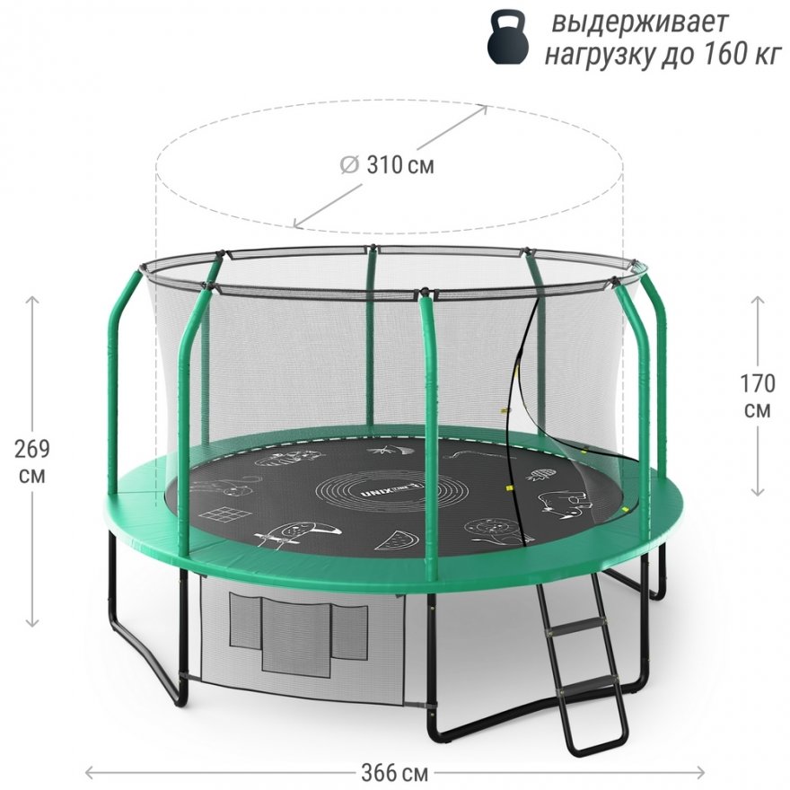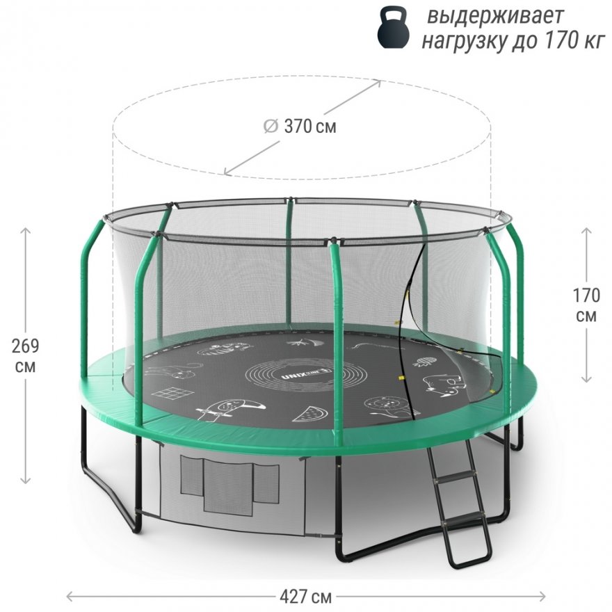 Для реализации самых интересных идей дизайнеры батутов UNIX line SUPREME GAME (4 in 1) специально оставили пустые места на прыжковом полотне. Полная свобода творчества, ограничивающаяся лишь фантазией художника.