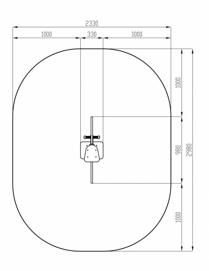 Сварной каркас из стальной трубы диаметром не менее 133 мм с толщиной стенки не менее 3,5 мм стальной трубы диаметром не менее 42 мм с толщиной стенки не менее 2,8 мм, стальной трубы диаметром не менее 32 мм с толщиной стенки не менее 2,8 мм, стальных пластин толщиной не менее 3 мм. Основание качалки соединено с пружиной, окрашено в серый цвет. Размер основания: 689х689х1020 мм.