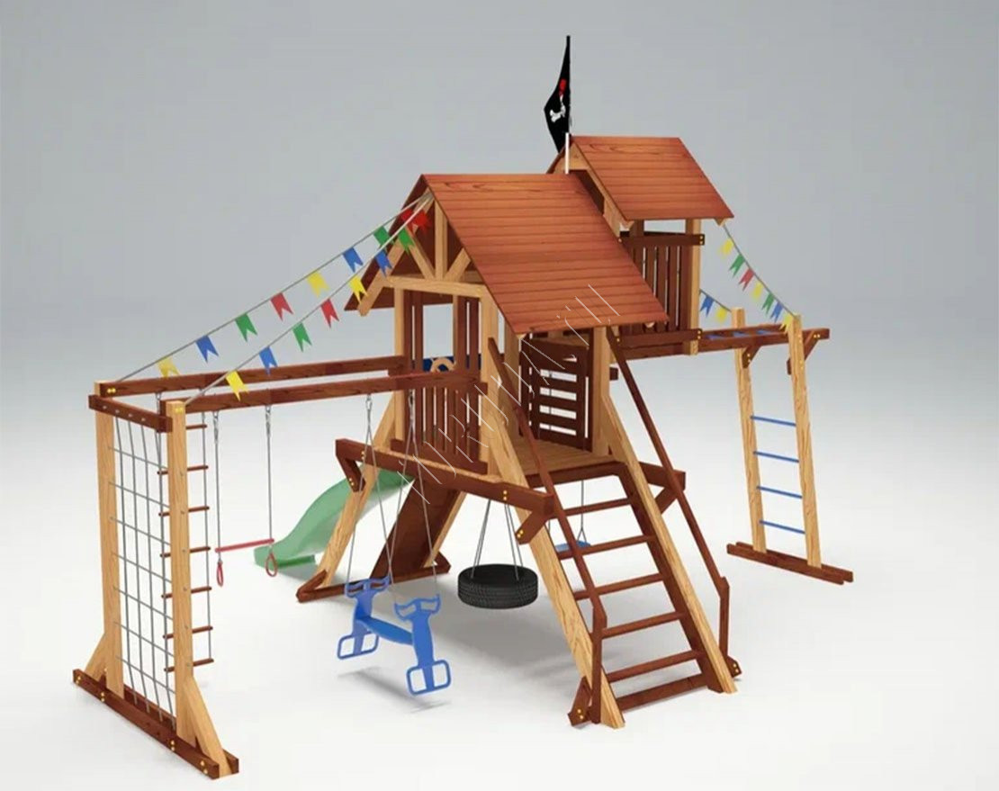 Площадка Галиот 9 обладает довольно широким функционалом (который по желанию можно легко расширить). А на качелях могут кататься даже родители! Детская площадка предназначена для дачи, коттеджа.
