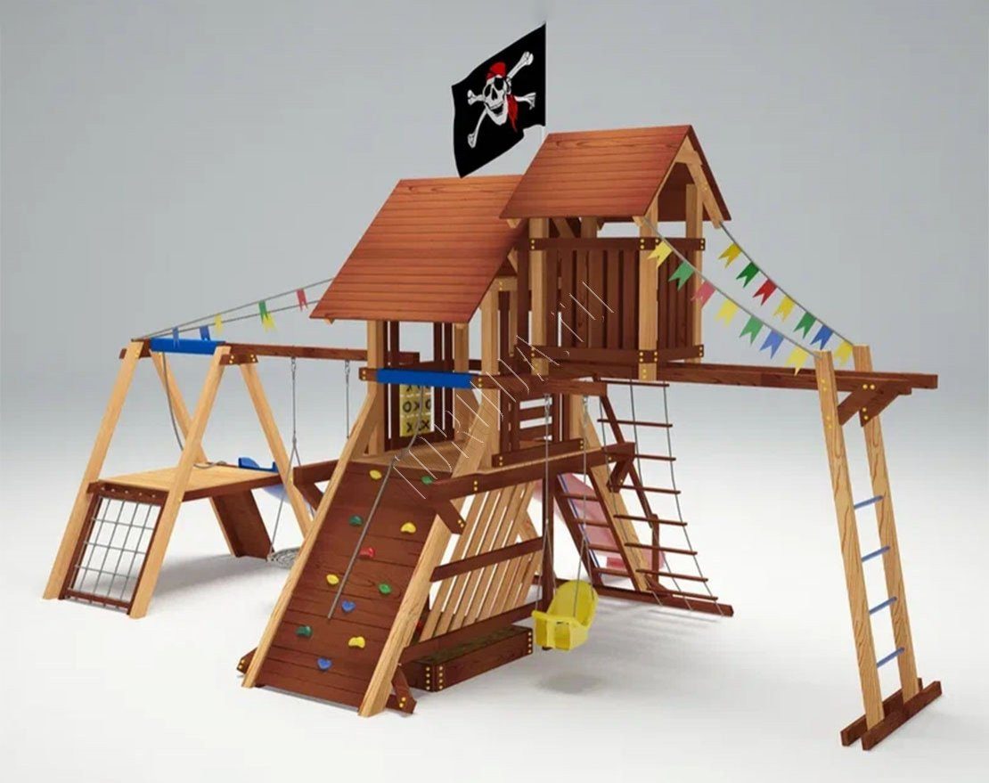 Площадка Галиот 10 обладает довольно широким функционалом (который по желанию можно легко расширить). А на качелях могут кататься даже родители! Детская площадка предназначена для дачи, коттеджа.