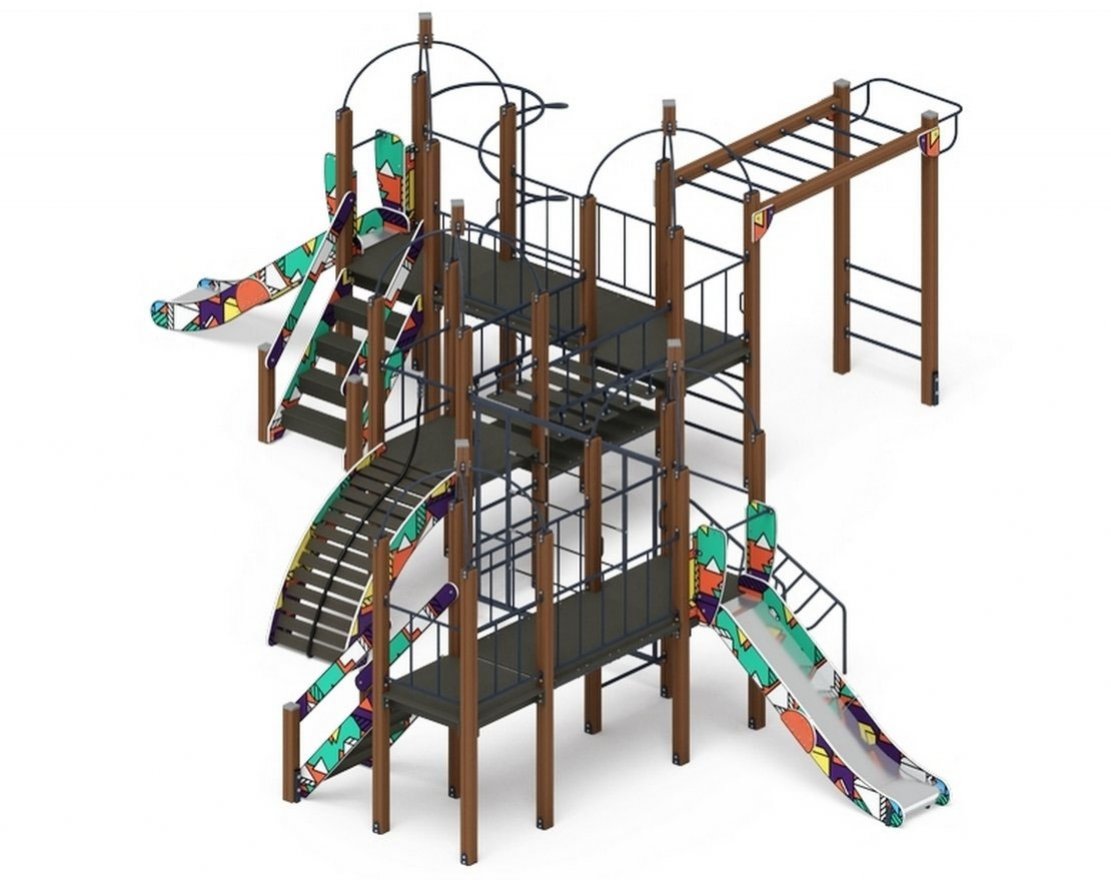 • Особенности комплектации: канат, турник, рукоход, горка, скалодром, лестница, кольцевой лаз