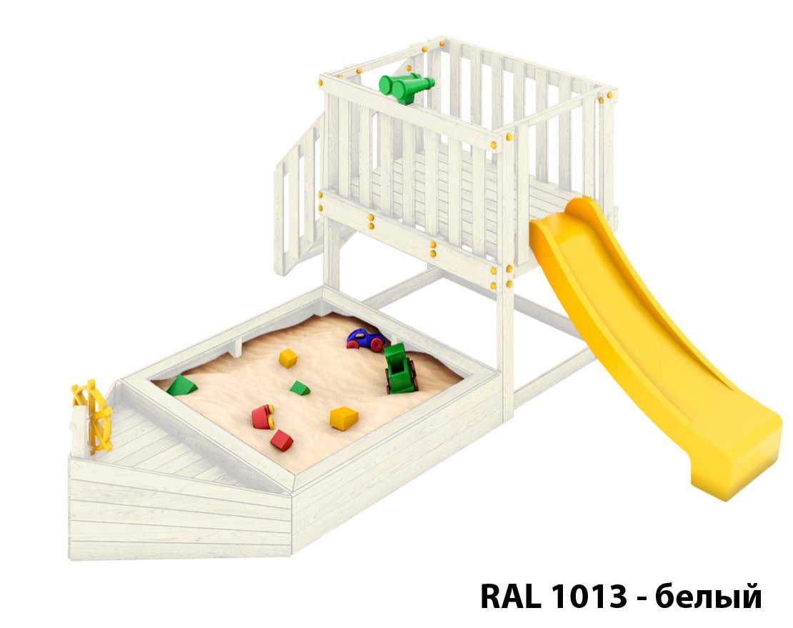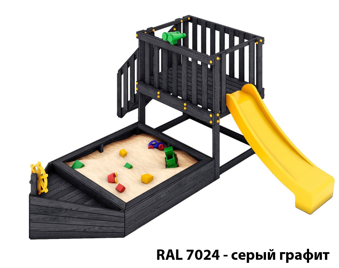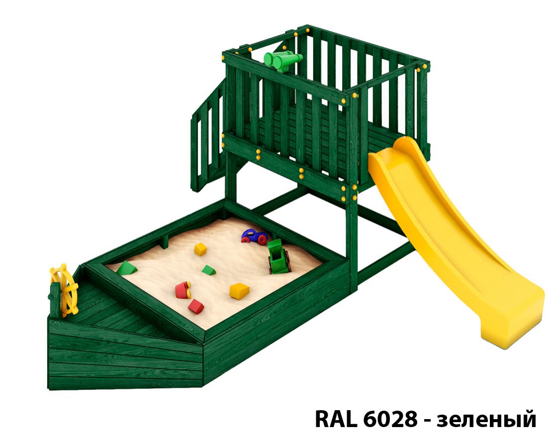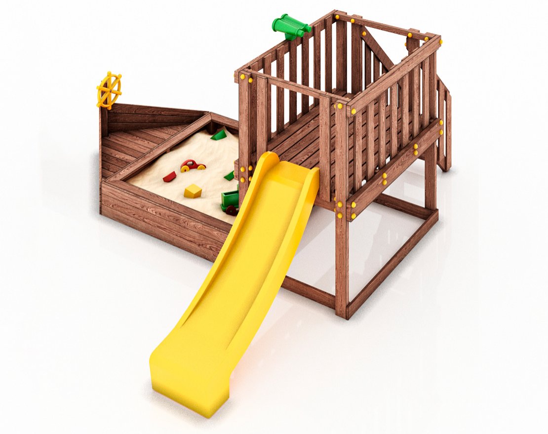 Детская песочница-кораблик и капитанский мостик с горкой с высоты 900 мм.