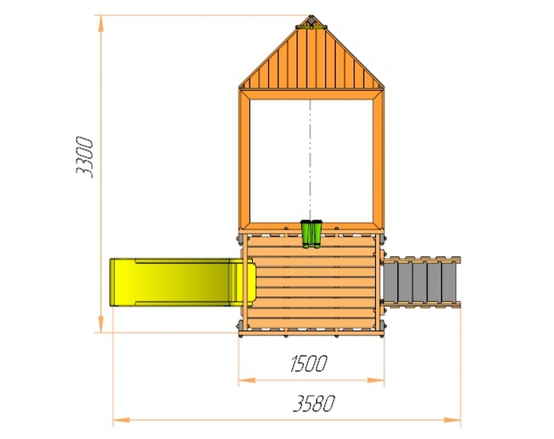 Габариты комплекса: 3300 мм х 1500 мм х 1600 мм.