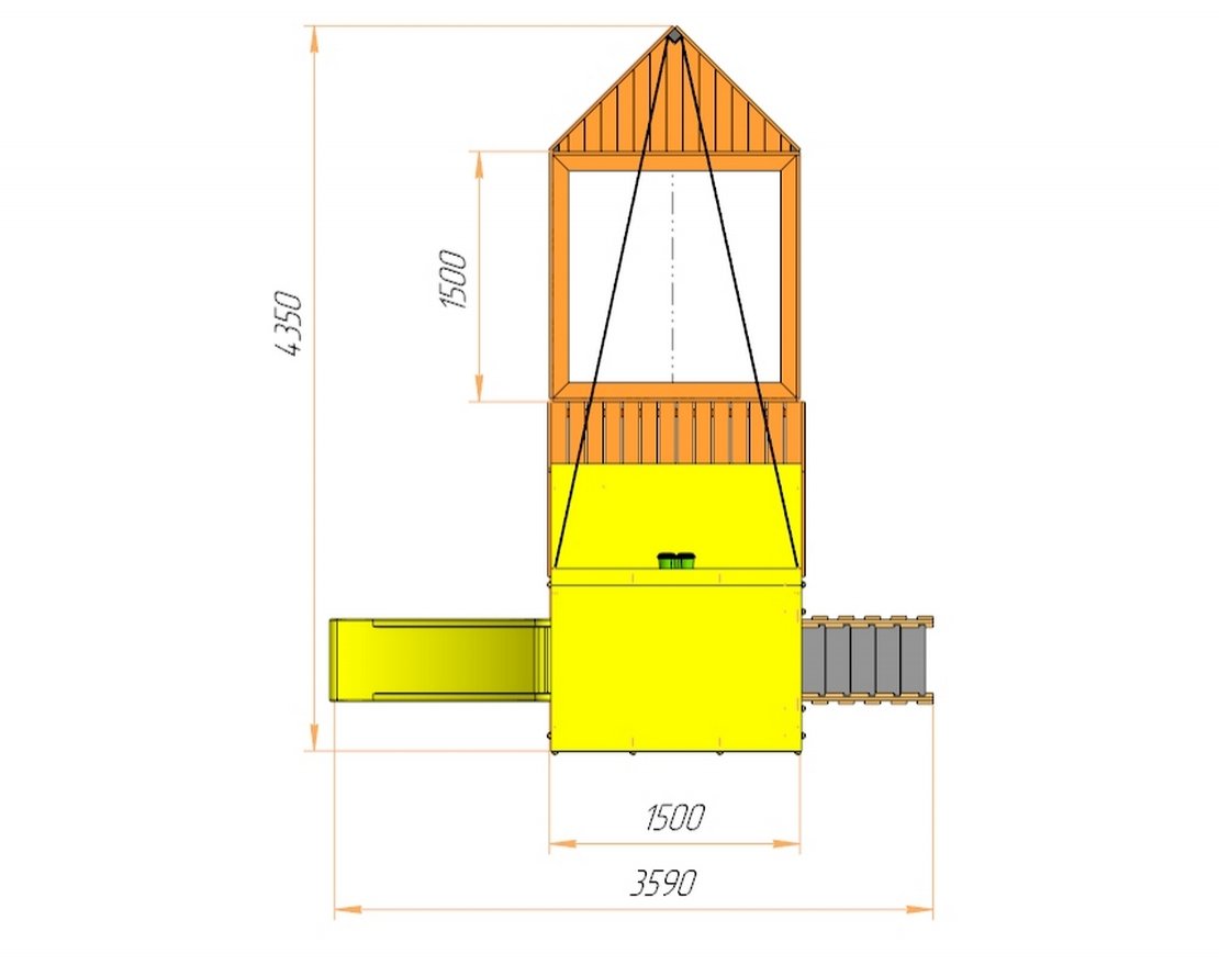 Габариты комплекса: 4350 мм х 1500 мм х 2500 мм.