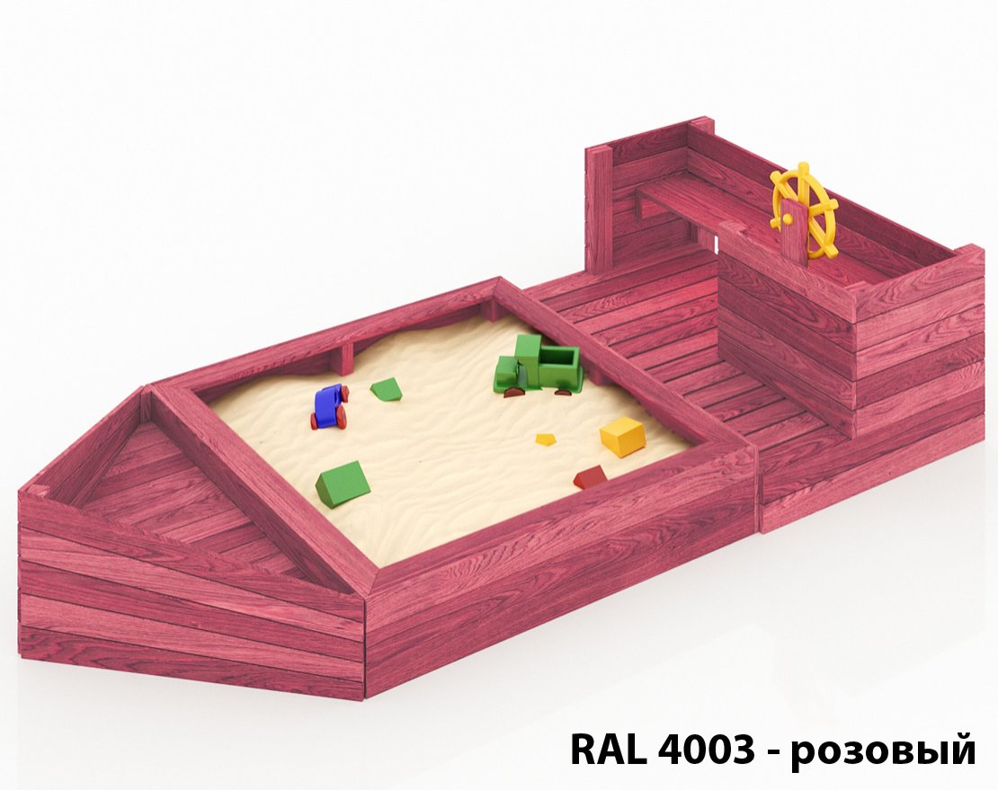 Детская песочница-кораблик и штурманская рубка со штурвалом.