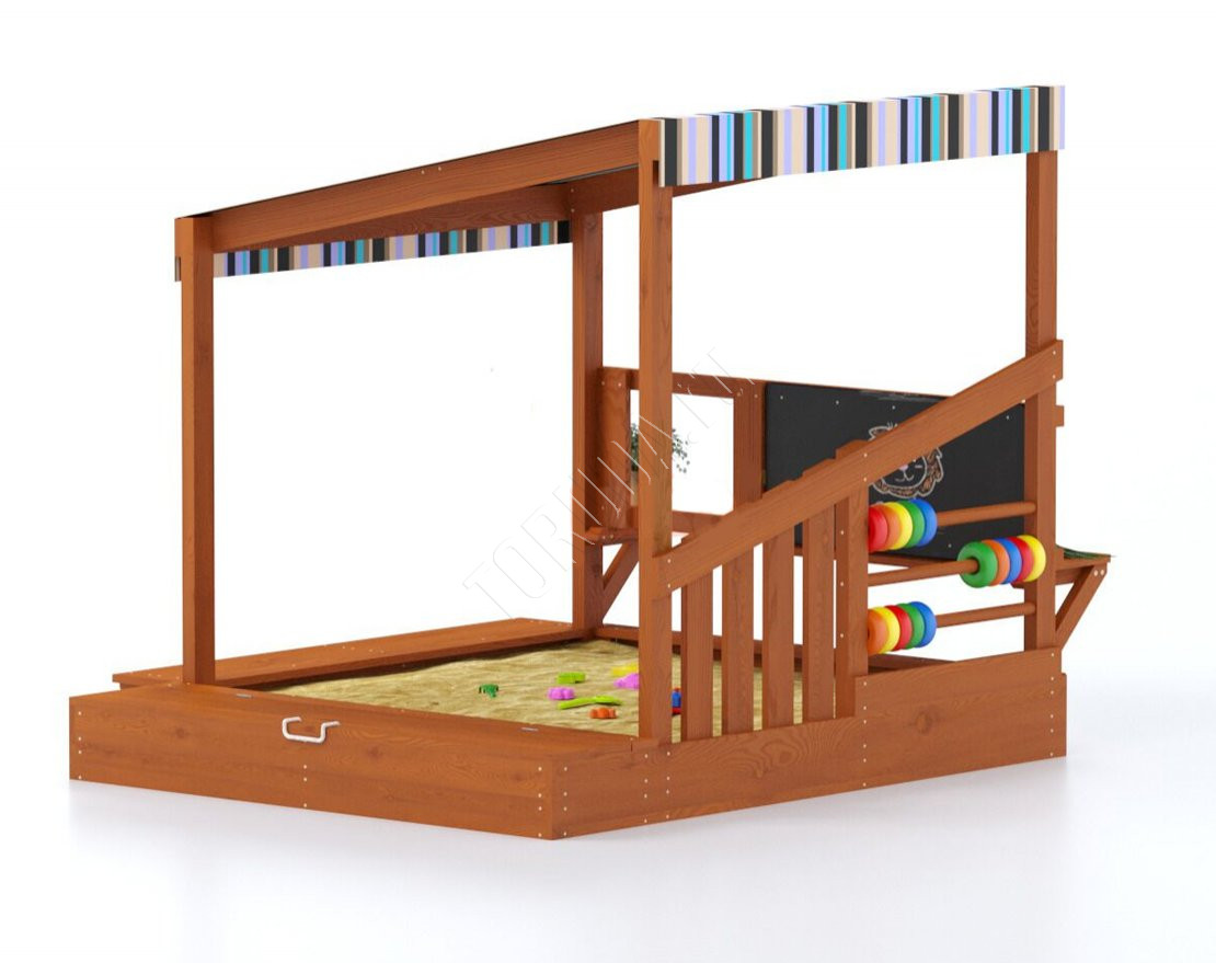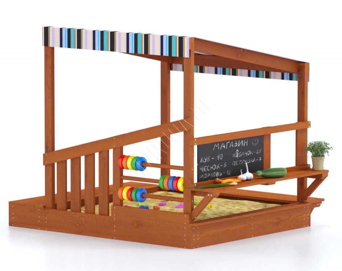 - Песочница – это отдельный элемент, который позволяет детям играть в песке и строить замки и башни. Лавочки на песочнице обеспечивают удобство и комфорт при игре.