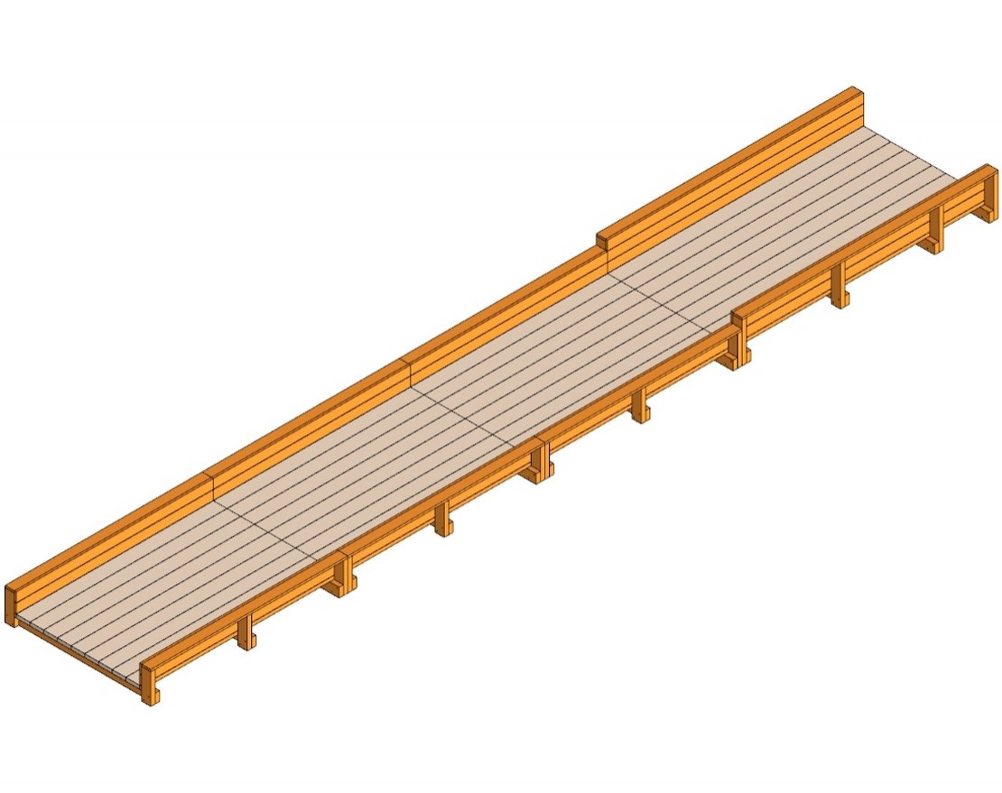 Данный модуль прикручивается к Зимней горке болтами, далее между секциями также соединяется между собой болтами и является продолжением ската, ширина ската 1250 мм.