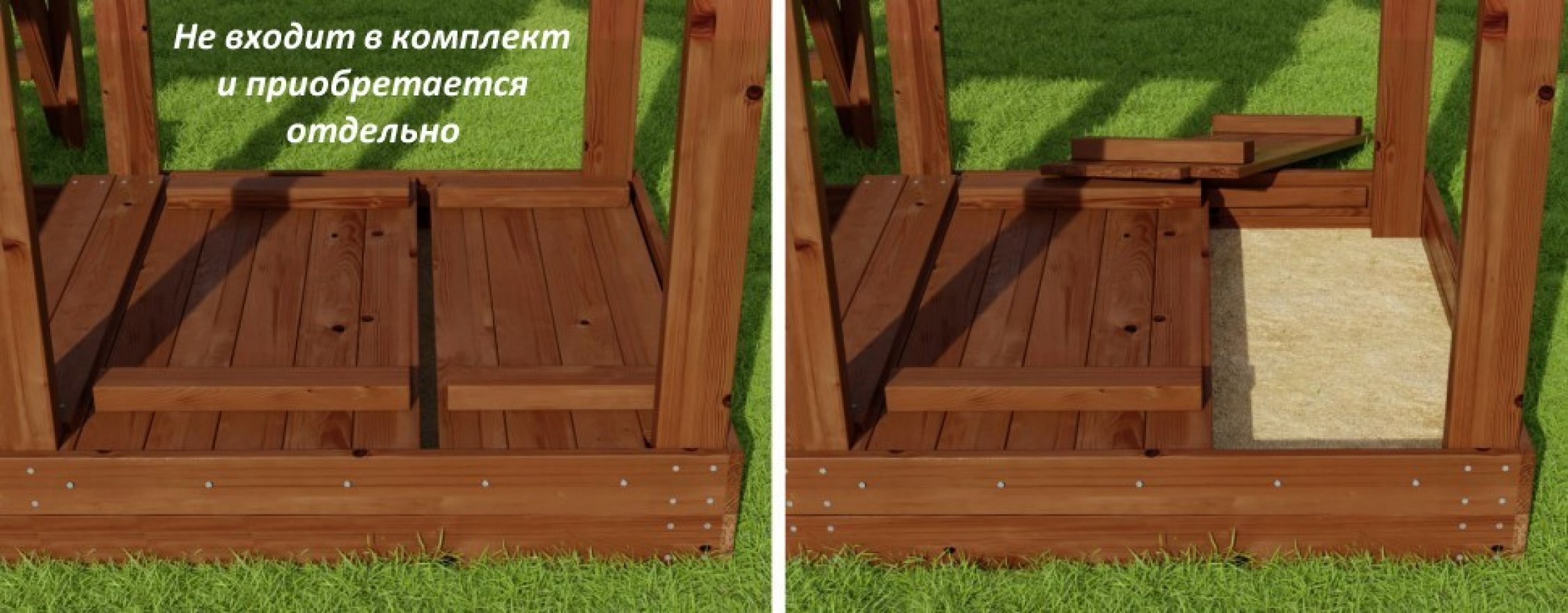 Самые маленькие будут рады удобным и безопасным качелям с высокими бортиками. Рядом – модель для ребят постарше. Шумной компанией весело кататься с горки или играть в баскетбол. В пространстве под горкой расположен столик и скамейки, а рядом – песочница, защищенная от дождя и солнца крышей.