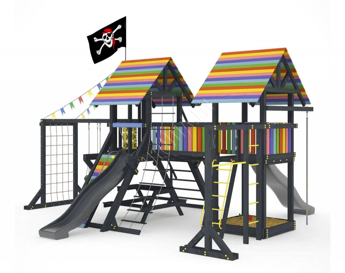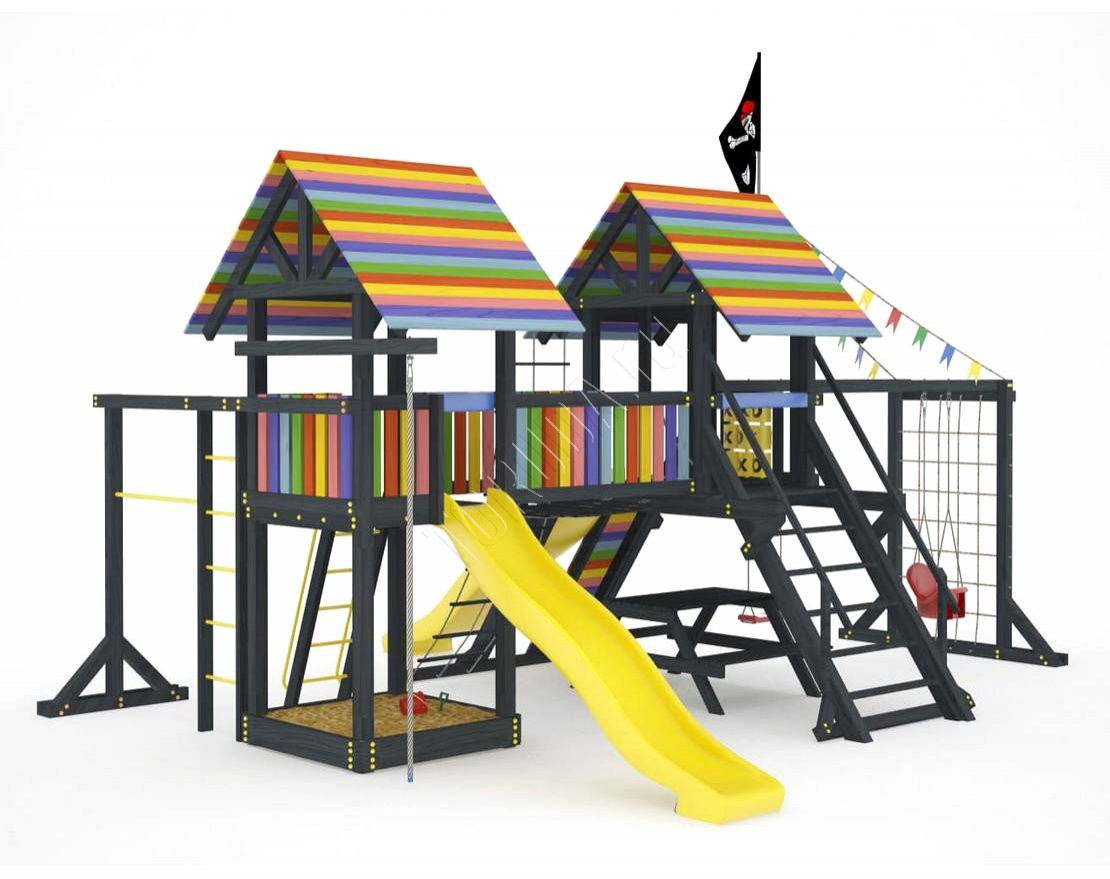 Детская площадка обладает довольно широким функционалом, предназначена для дачи, коттеджа.