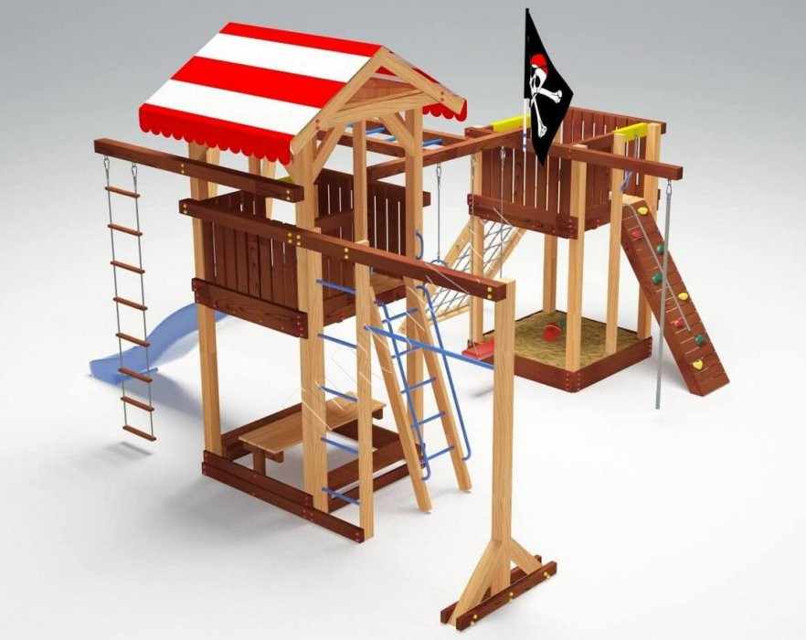 Площадка Галиот 17 обладает довольно широким функционалом (который по желанию можно легко расширить). Детская площадка предназначена для дачи, коттеджа.