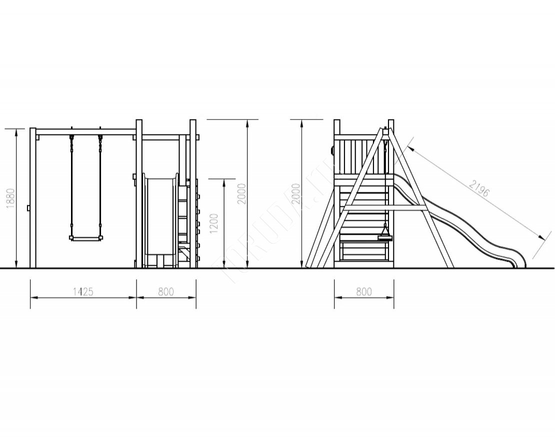 Площадка с качелями (всесезонная) наполнит досуг детей энергией и радостью. Она компактная и займёт всего лишь несколько квадратных метров участка дачного или загородного дома. Покрытие с антисептиком защитит натуральные составляющие от непогоды (наносится самостоятельно).