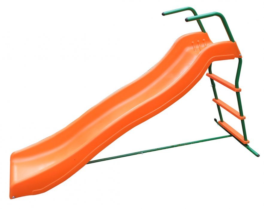 Спускной желоб и сидение качелей изготовлены из пластика.