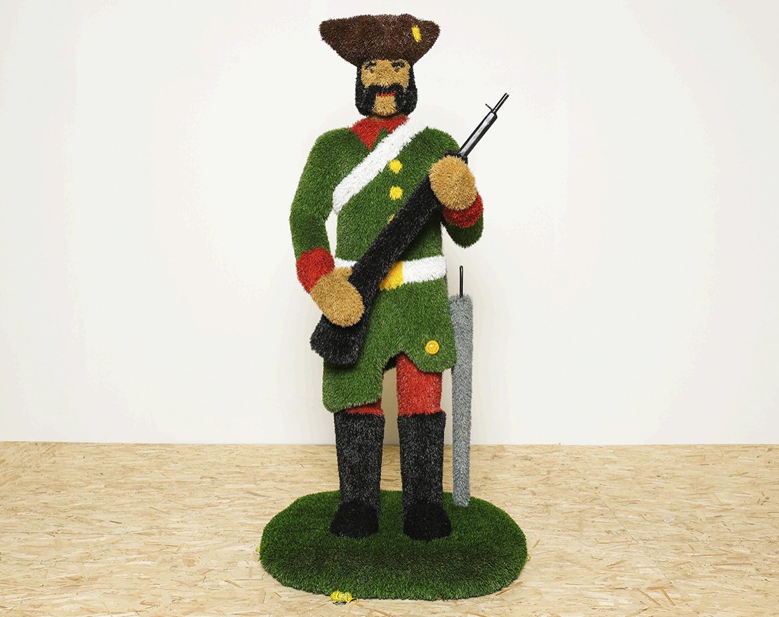 Топиарий, изображающий гусара с ружьем, – это настоящее произведение искусства, в котором воплощен неповторимый образ воина-аристократа: элегантный мундир, бравая осанка, ружье наперевес.