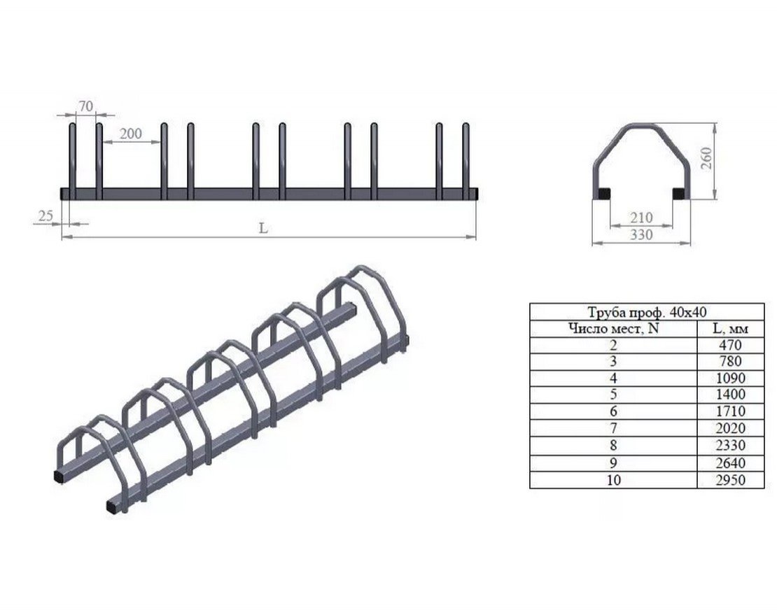 При изготовлении велопарковки на разное количество мест параметры длины: