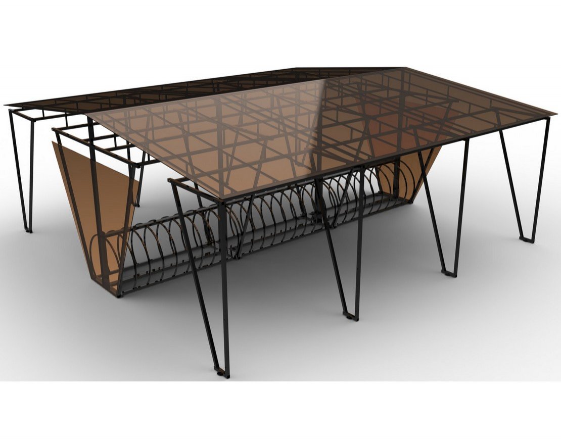 Велопарковка с навесом "Шаттл" устанавливается в парках, зонах отдыха, у торговых центров и других городских локаций. Обеспечивает упорядоченное размещение как велотранспорта, так и самокатов, защищая от осадков и ультрафиолета.