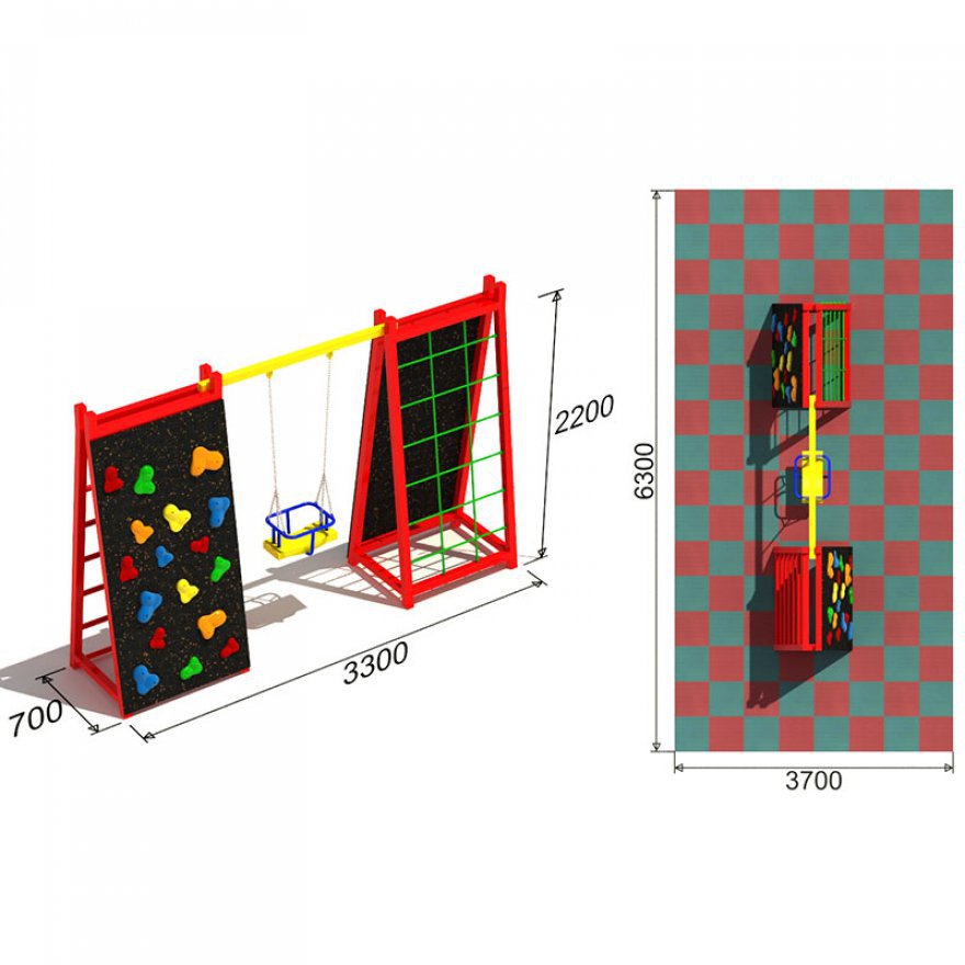 Для самых маленьких непосед предусмотрены детские качели с сидением, оборудованным защитой, благодаря чему ребёнок может легко держаться сам, пока родители его раскачивают. Яркое цветовое решение площадки с первого взгляда приковывает внимание, оживляет двор и может прекрасно соседствовать с красочными песочницами, пластиковыми горками и качелями-балансирами.