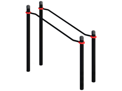 Комплекс состоит из четырех опорных столбов высотой: 2 шт. - 2000 мм, 2 шт. - 1200 мм и двух жердей длиной 1790 мм, концы которых изогнуты к опорным столбам в противоположные стороны под углом 30 градусов. Расстояние между центрами опорных столбов брусьев 608 мм. Жерди крепятся к опорным столбам при помощи хомутов на высоте: 1466 мм - в верхней части и 1000 мм - в нижней части от поверхности основания. Длина комплекса не более 2010 мм.