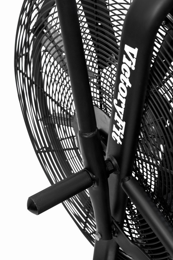 Эйрбайк VictoryFit VF-AirBike GT. Нагрузка обеспечивается за счет воздушного сопротивления. Предусмотрена регулировка сидения, как по высоте, так и в горизонтальной плоскости, под любой рост пользователя. На мониторе отображается информация о затраченных калориях, пройденной дистанции, времени, скорости. Занимающийся может использовать только силу ног, вращая педали или силу рук. Для более интенсивной кардио-тренировки можно совмещать движения рук и ног. Педали вращаются и в обратном направлении, для того, чтобы задействовать различные группы мышц.